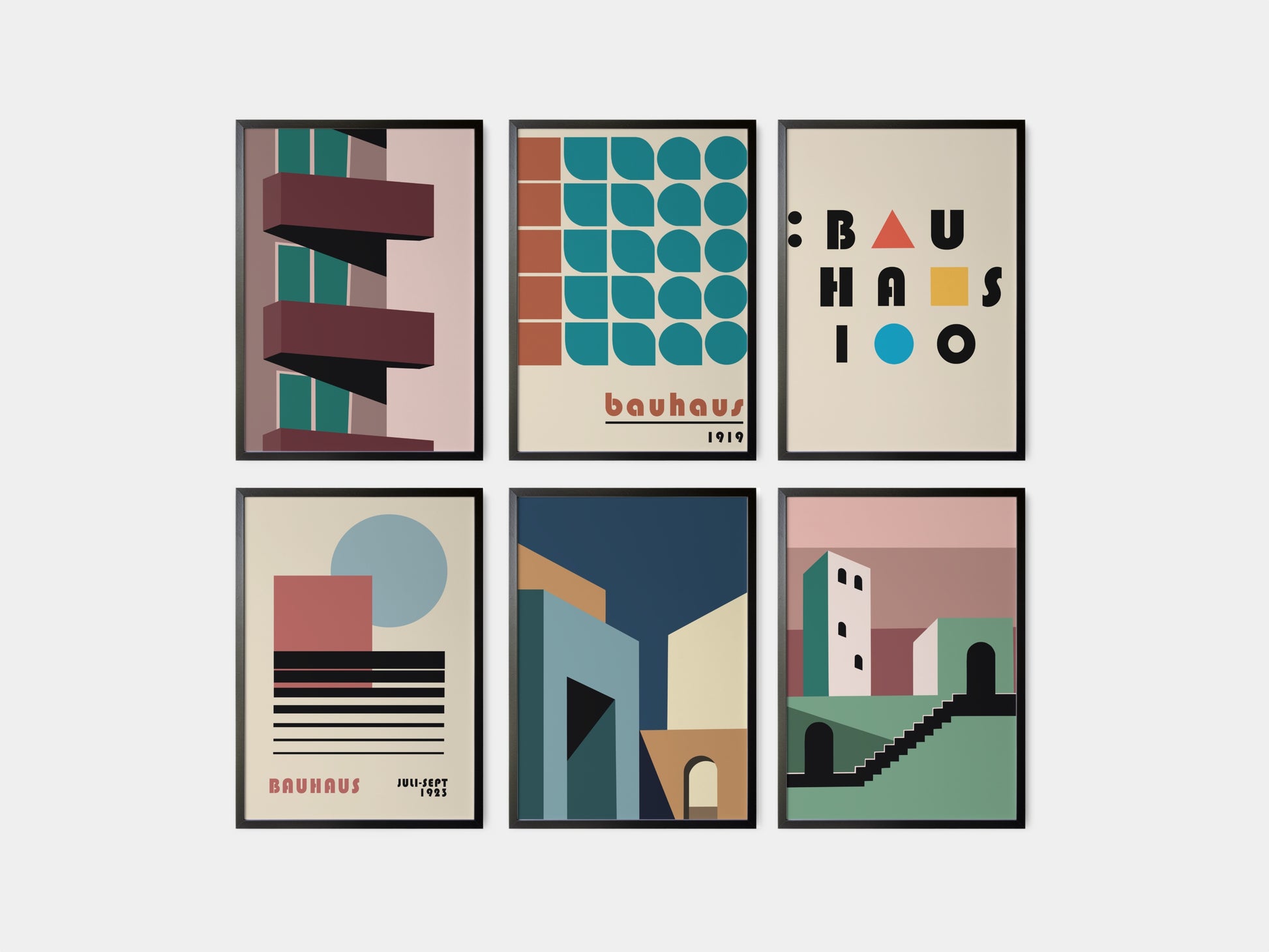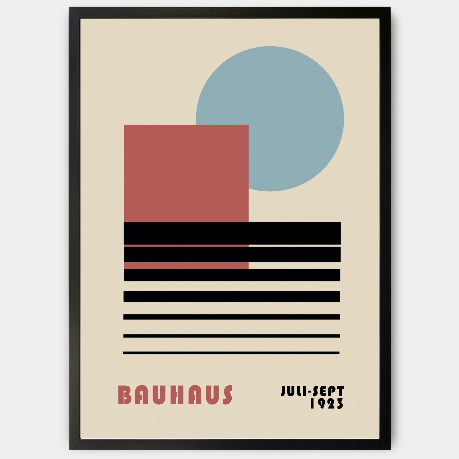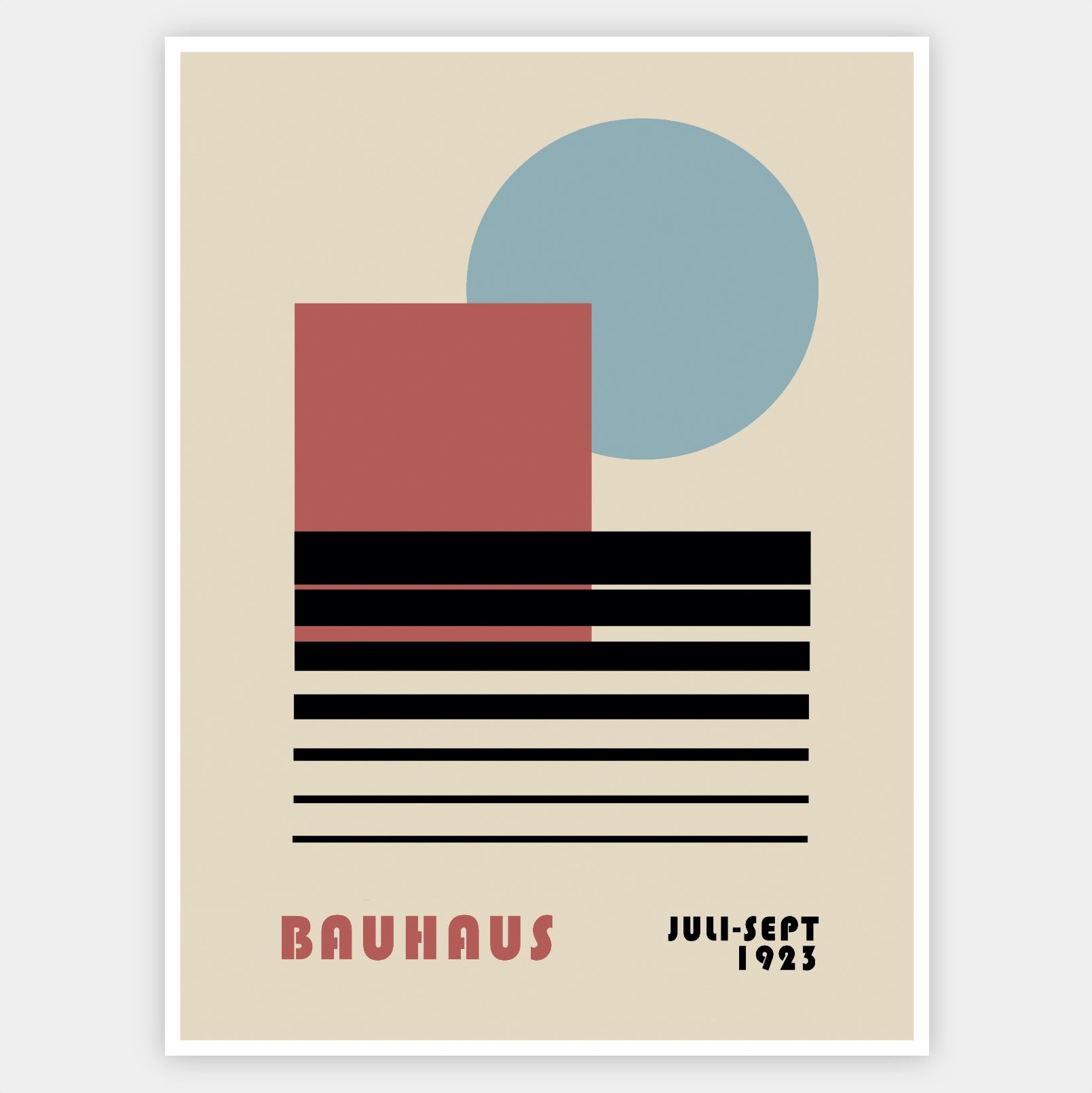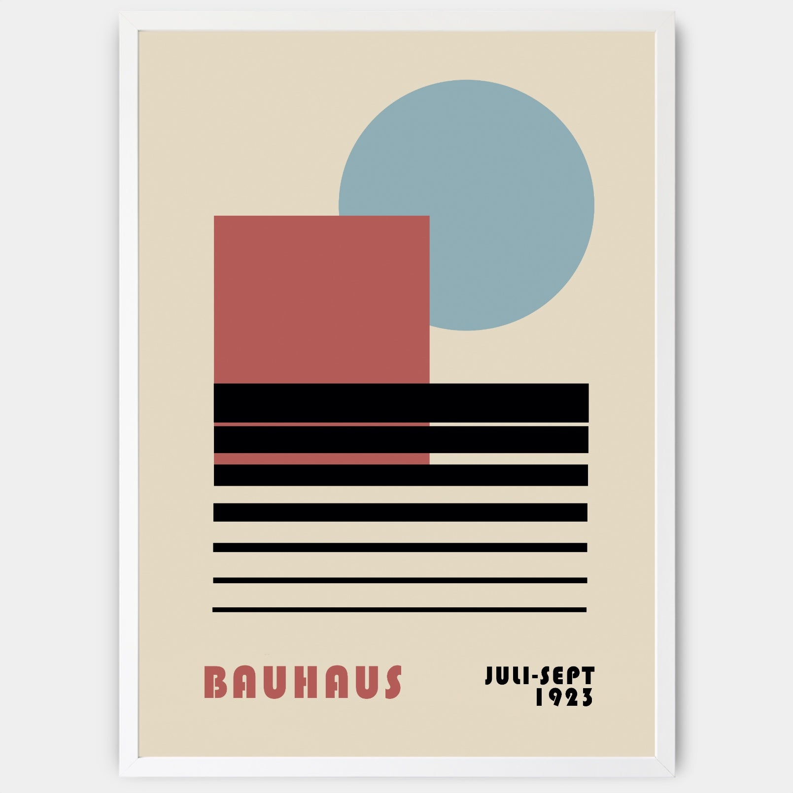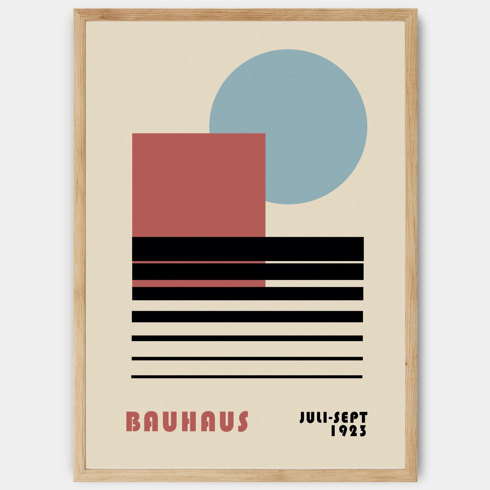 Plagát s grafikou inšpirovanou slávnou nemeckou umeleckou školou Bauhaus. Poster sa predáva bez rámu s možnosťou doobjednať tenký drevený rám o hrúbke 1,2 cm. Na výber sú tri farebné prevedenia - biely, čierny a dubový dizajn.